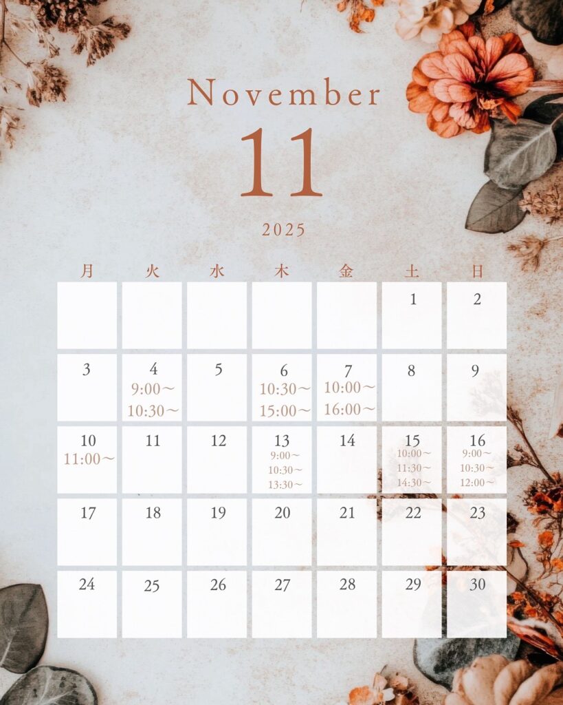本日は11月前半の体験スケジュールのご案内です🗓️