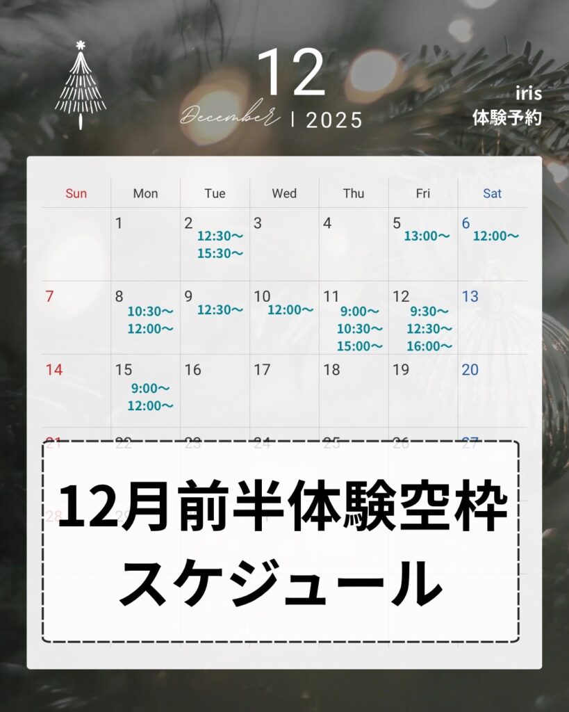 本日は12月前半の体験スケジュールをご案内いたします👏🏻